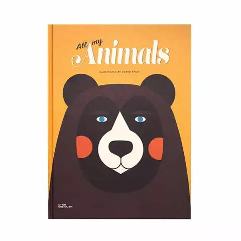 An octopus swims next to a jar of ink with a quill pen. A friendly, brown grizzly bear stares from across the page at a beehive dripping with honey. A wise owl perches next to his prized spectacles. In All My Animals, twenty-three animals and twenty-three accessories are colourfully illustrated with attention to detail and an eye for quirky humour. The iconic vintage style of illustrator Dawid Ryski reimagines well-known animals into works of art reminiscent of classic posters.