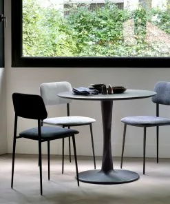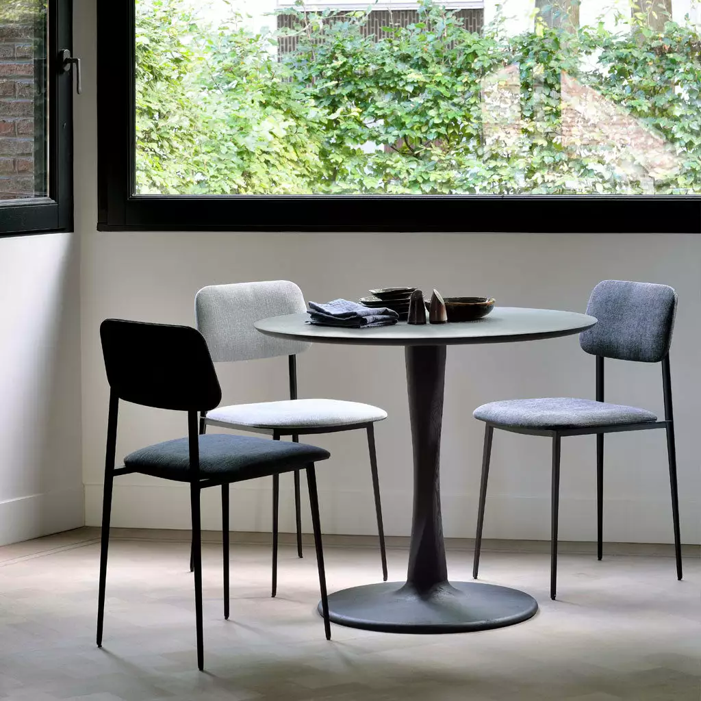 An airy and angular metal silhouette forms the basis of this minimalistic design. By balancing between solidity and softness, creating a dining chair that offers a different experience from any given angle.