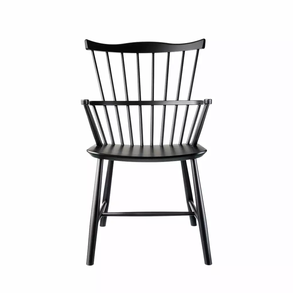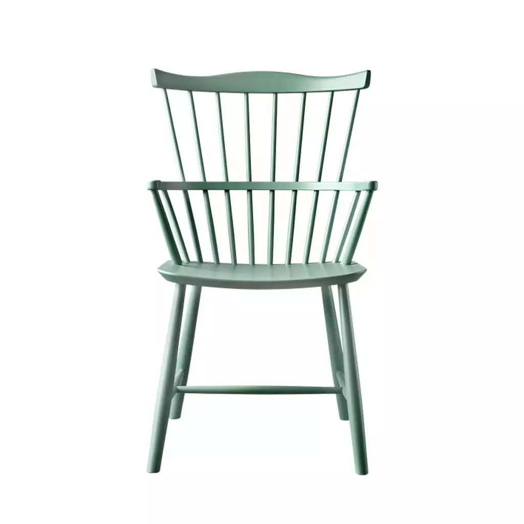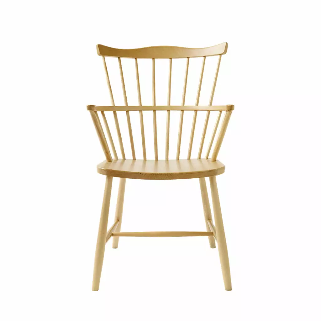 FDB Møbler’s J52B chair designed by Børge Mogensen in 1952 is one of the most iconic pieces of Danish design. An interpretation of a classic English Windsor chair it gained popularity in the United States, where it became known as President Kennedy’s favourite armchair. With its curved armrests and high, spindled back, J52B makes a great freestanding chair for relaxing, and its sleek, upright design also serves as a dining chair.