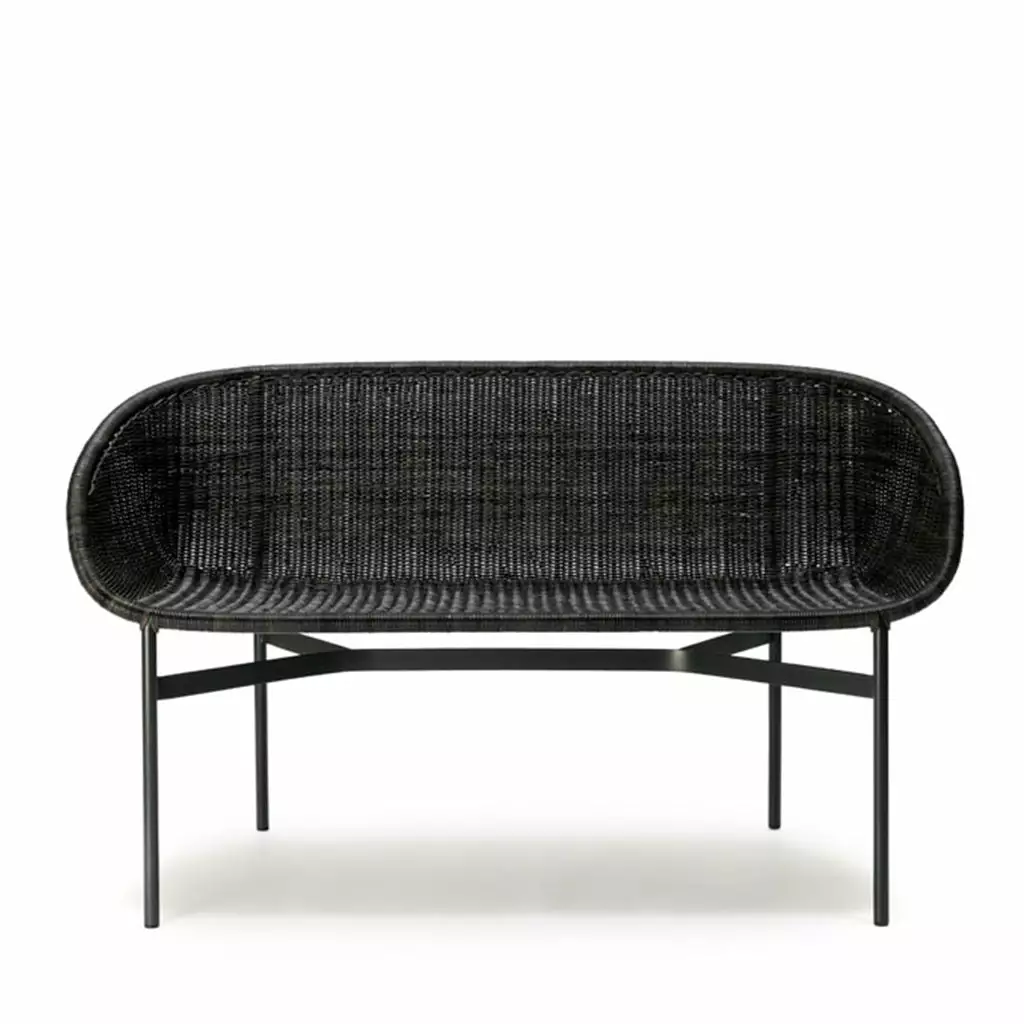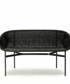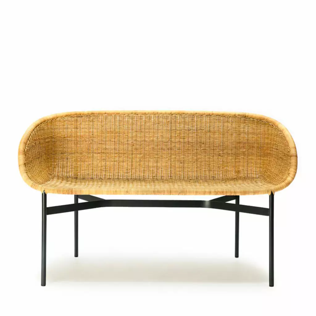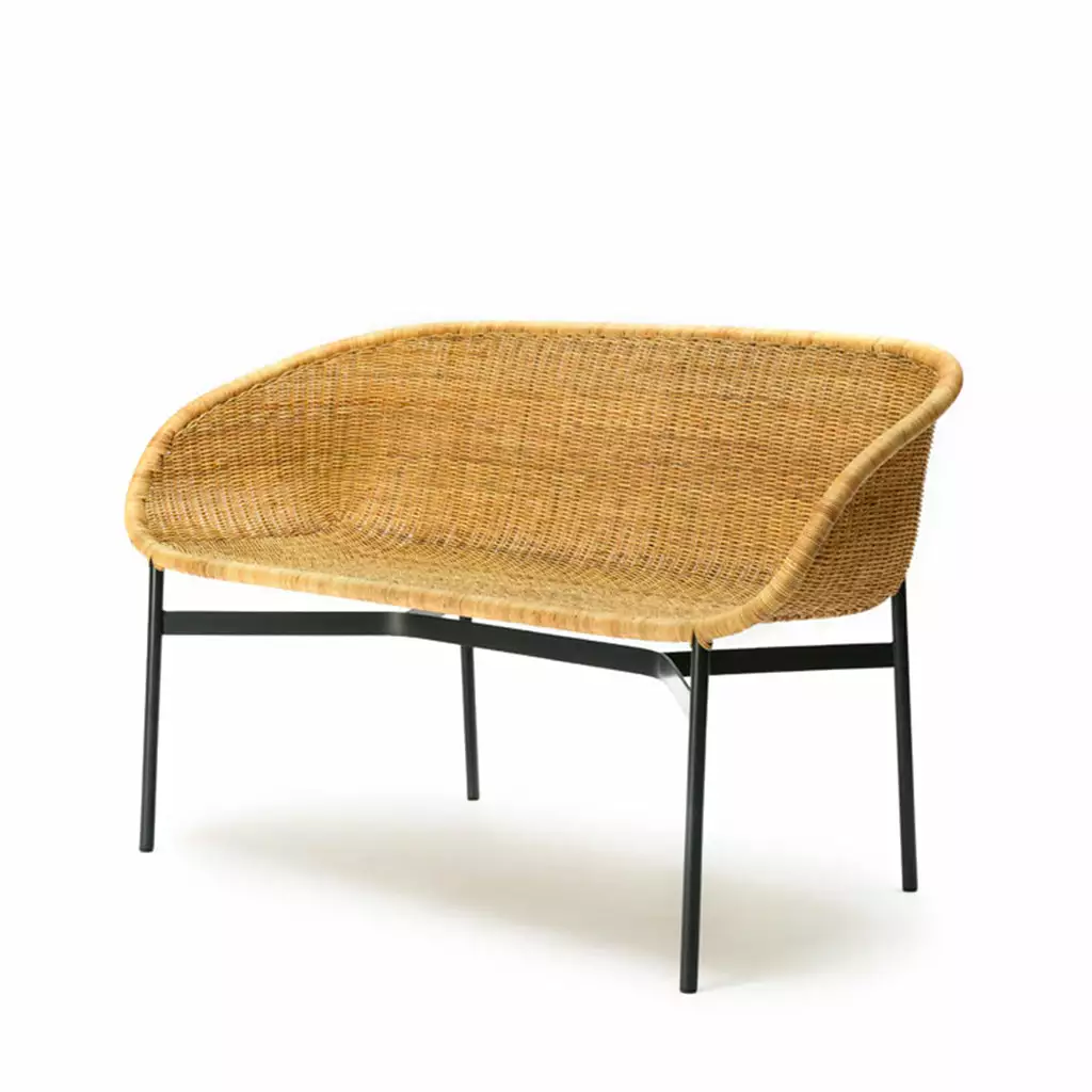 Clara fuses the intimacy and informality of a bench with the practicality and comfort of a dining chair. The graceful and balanced expression is further enhanced by a suspended rattan shell supported by slim legs, allowing for a variety of uses in both residential and commercial settings. Available in both natural and graphite rattan.
