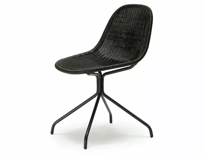 The playful Edwin chair is the perfect combination of formal, yet informal design. The formal base with the contoured rattan shell softens and invites further exploration, embracing the user, allowing for a variety of uses in both residential and commercial settings. Available in both natural and black rattan.
