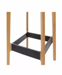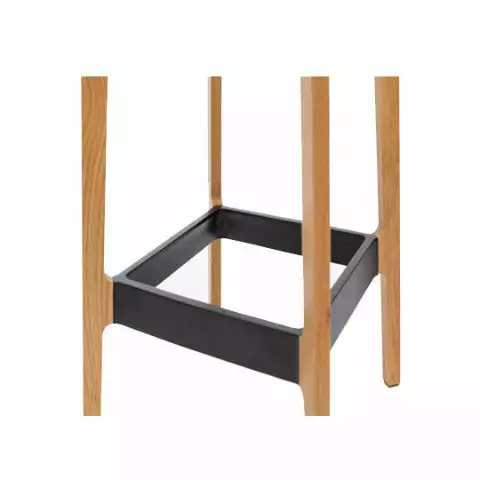 Materials: Oak frame, laminated veneer seat and black, 2 pack waterbased finish and powder coated cast aluminium foot rest