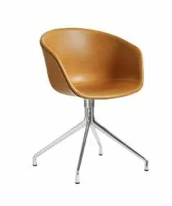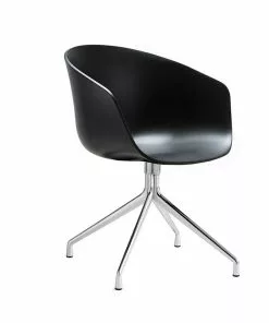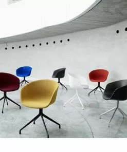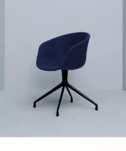 This version of About a Chair has a swivel base in powder-coated steel, which gives the chair a more formal expression, both because the wooden frame has been replaced with steel and because the delicate and elegant legs fan out from the centred base, almost standing on tiptoes and optically raising the chair off the floor. Like the other versions, this version too is available with three upholstery options: full upholstery of the whole shell, upholstery on the front of the rounded shell or a seat cushion. All three versions allow you to vary the expression with relatively simple variations in upholstery, which of course owes a great deal to fabric textures and colours.