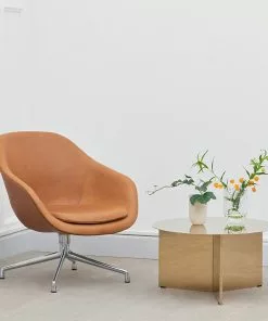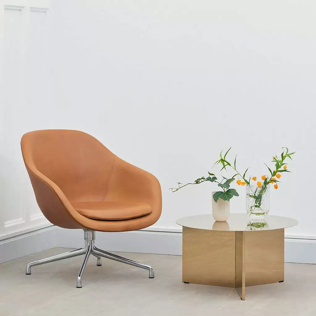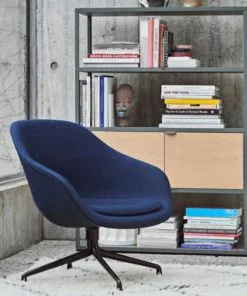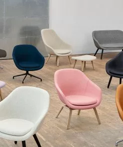 The swivel base version of About a Lounge Chair has the same compact body, but the light metal frame gives the chair a more contemporary expression, as if the rounded, curvy and warm is energised when it is combined with the cold, industrial frame. The body of the chair dominates the design without seeming out of proportion – in fact, the effect is rather the opposite: It makes About a Lounge Chair seem more welcoming. The high-backed shell has a lighter feel, which is emphasised by the low swivel base.