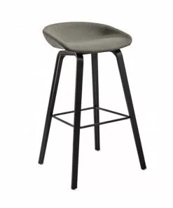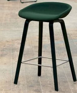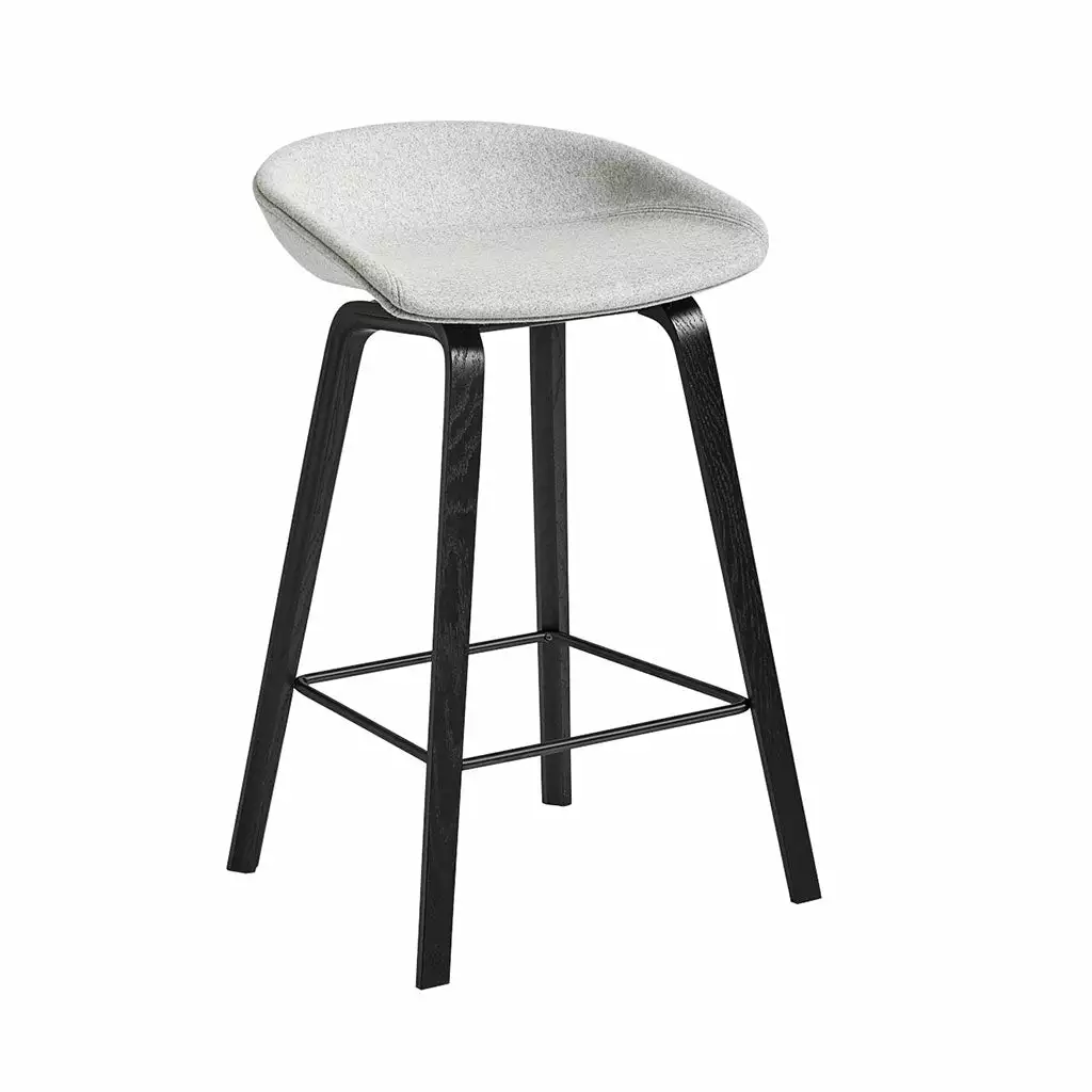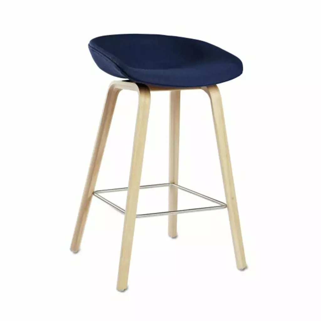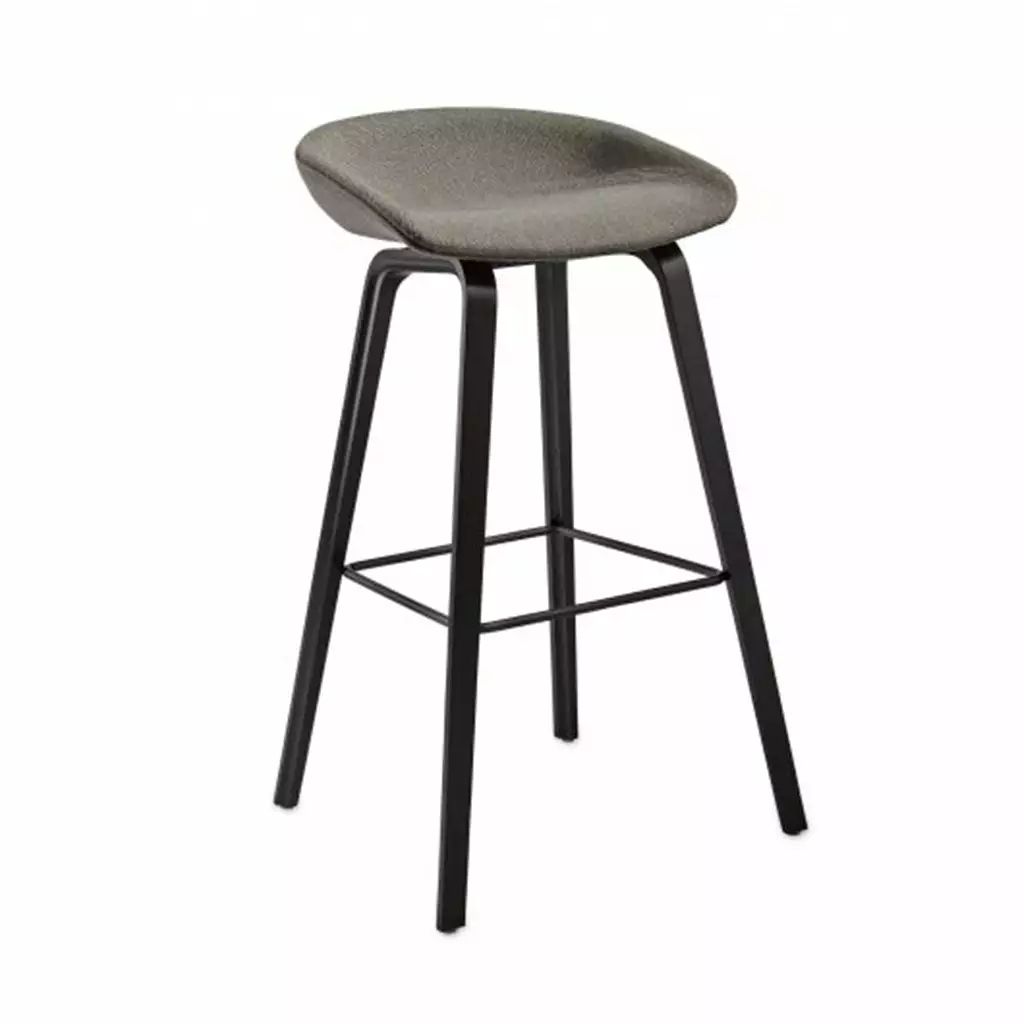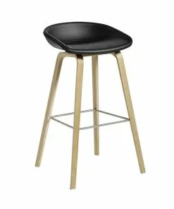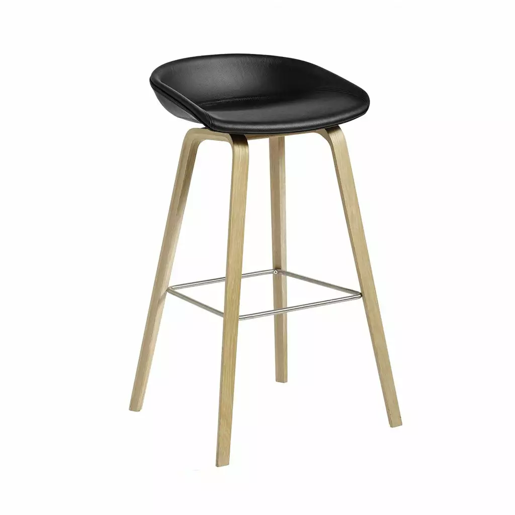 The bar stool About A Stool AAS33 has the same capacity for transformation as the other designs in the series. With a curved backrest and long, elegant wooden legs, it enjoys a simple yet strong visual presence that makes it ideal as a bar stool in a public environment, as well as for informal meetings and meals. Available in two heights and in a range of wood finishes, upholstery options.Â