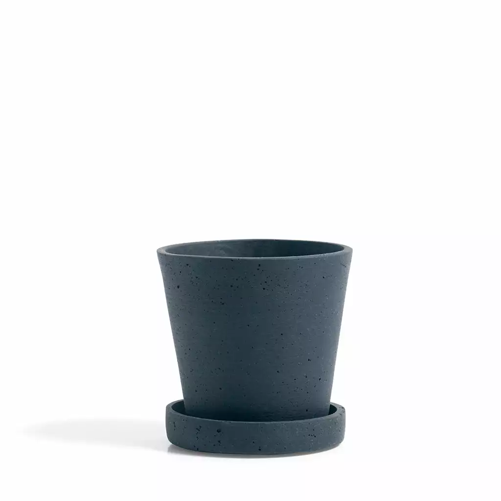 Flowerpot is a minimalist flowerpot with a saucer made of black or grey polystone; a modern composite material