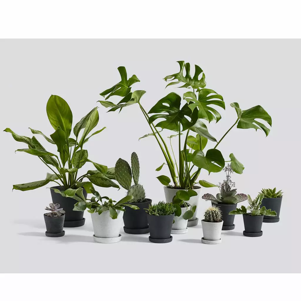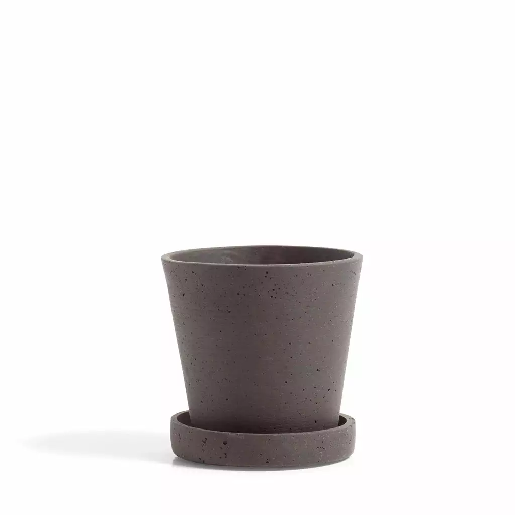 Flowerpot is a minimalist flowerpot with a saucer made of black or grey polystone; a modern composite material