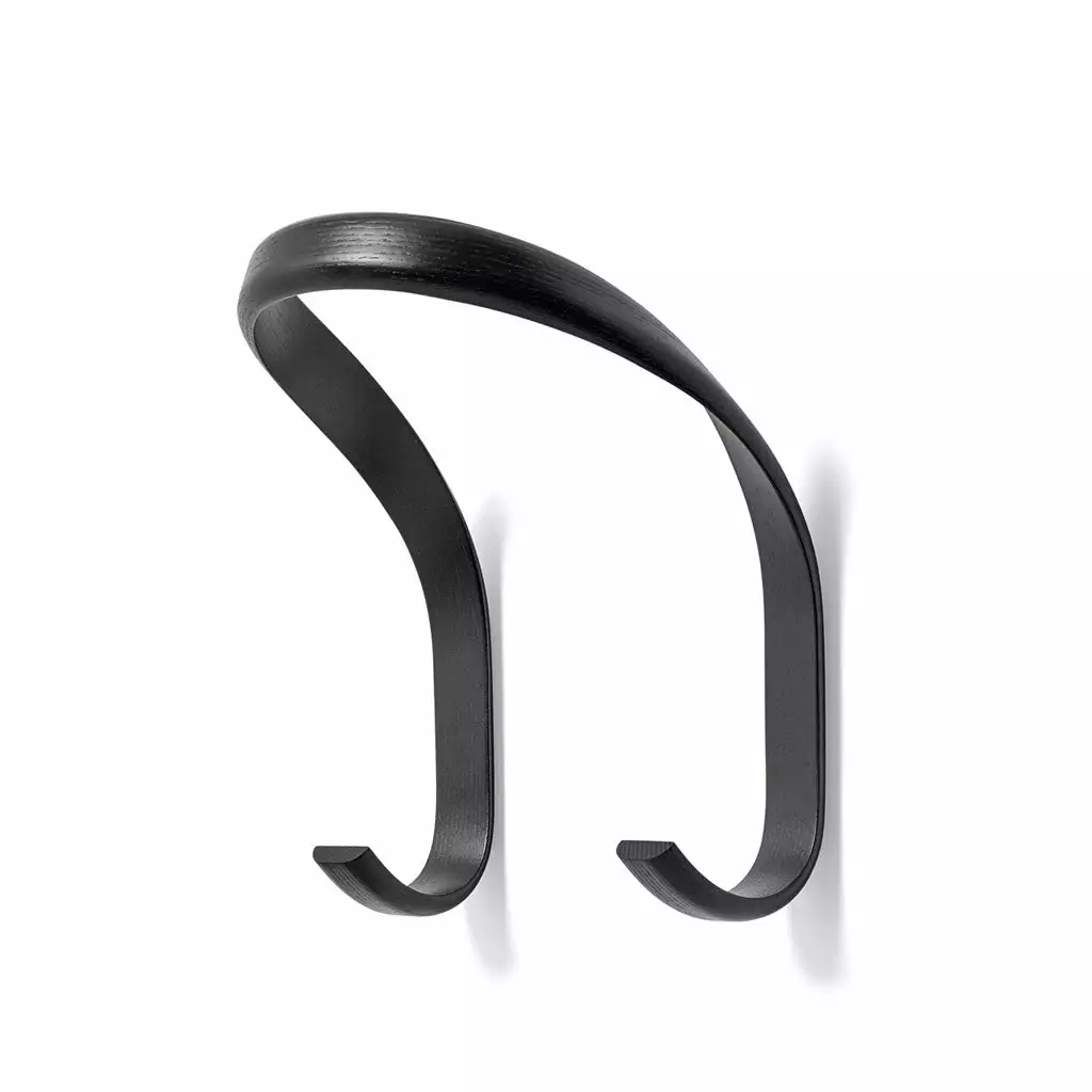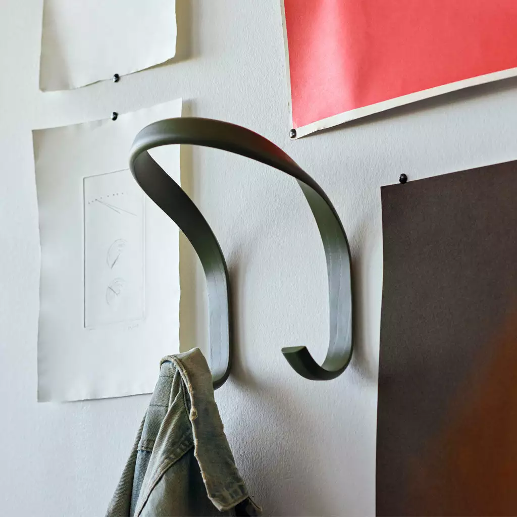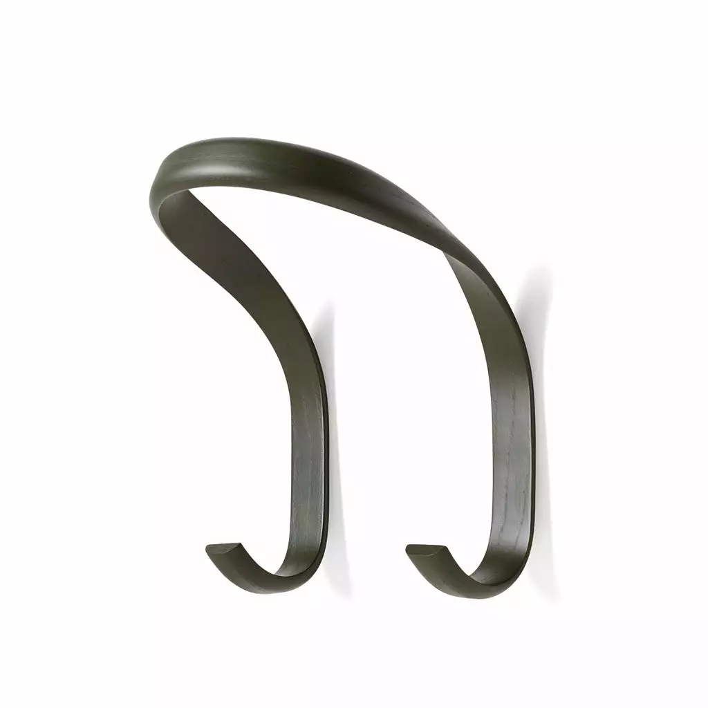 Line Depping’s Hook Combines a simple sense of utility with serenity of form, a strip of ash is steamed, stretched out and then reshaped to create this double hook design. It features recessed fixing brackets on the wall-facing side of the strip for optimal strength to hold multiple coats and bags.