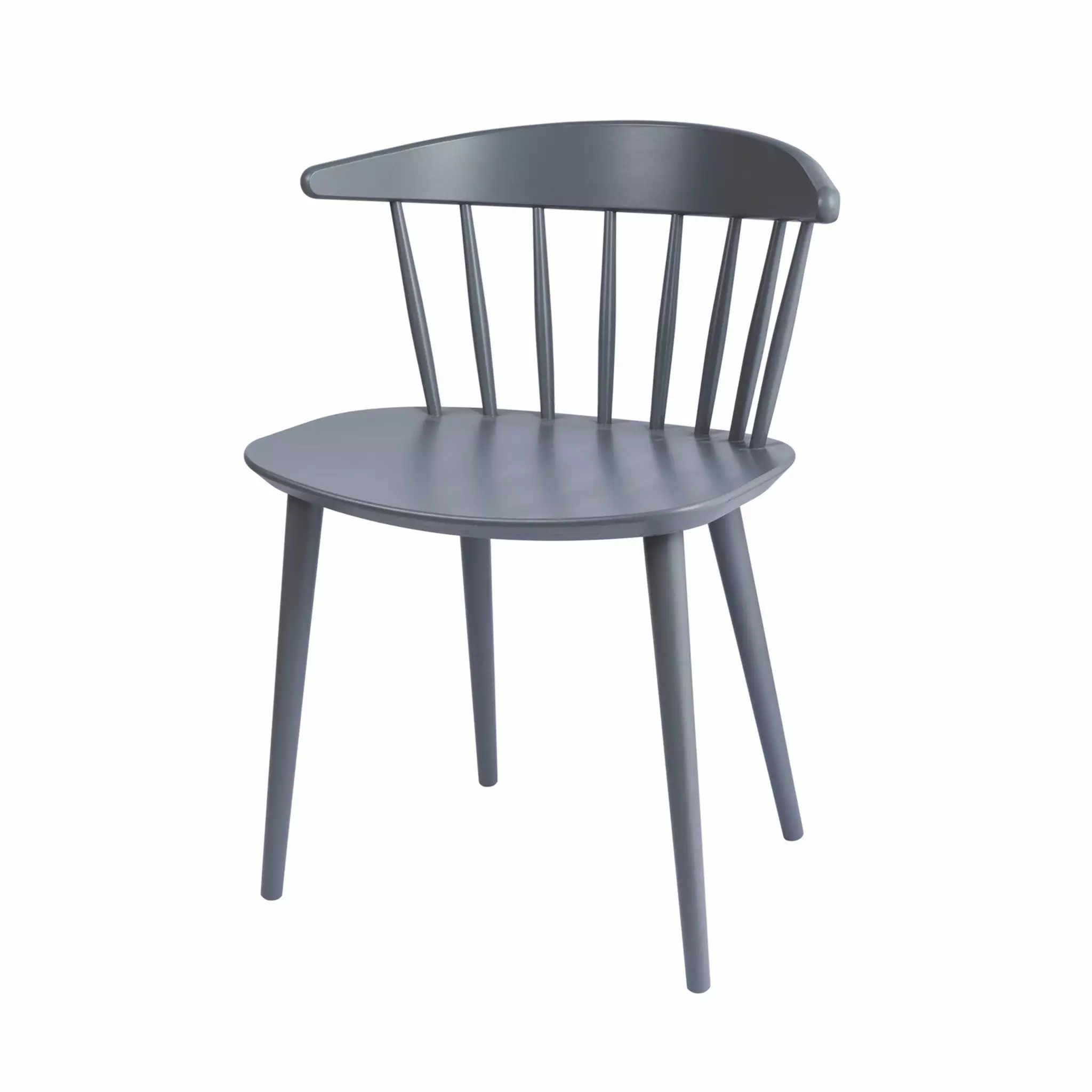 With its wide back and seat combined with the light, vertical graphic expression, J104 resembles a cross between a dining chair and an easy chair. In this unique composition, although the broad seat takes up visual space, the spindle structure of the back lightens the overall impression and makes J104 a sculptural classic.
