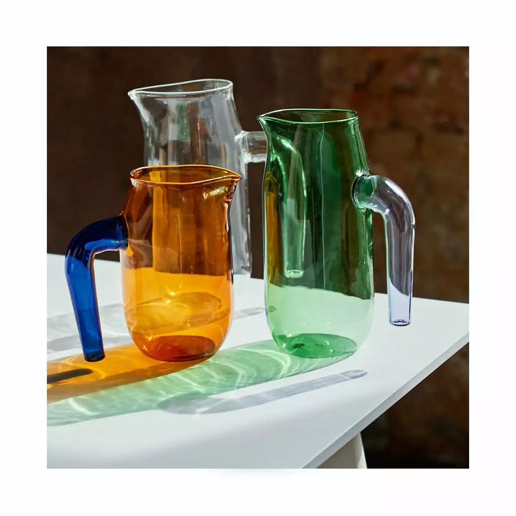 Expert glass artist Jochen Holz has created this glass Jug for HAY. The simple, organic design has a strong yet graceful expression, reinforced by the shaped rim and downward curve of the handle. Made from borosilicate glass so it is extra heat resistant.