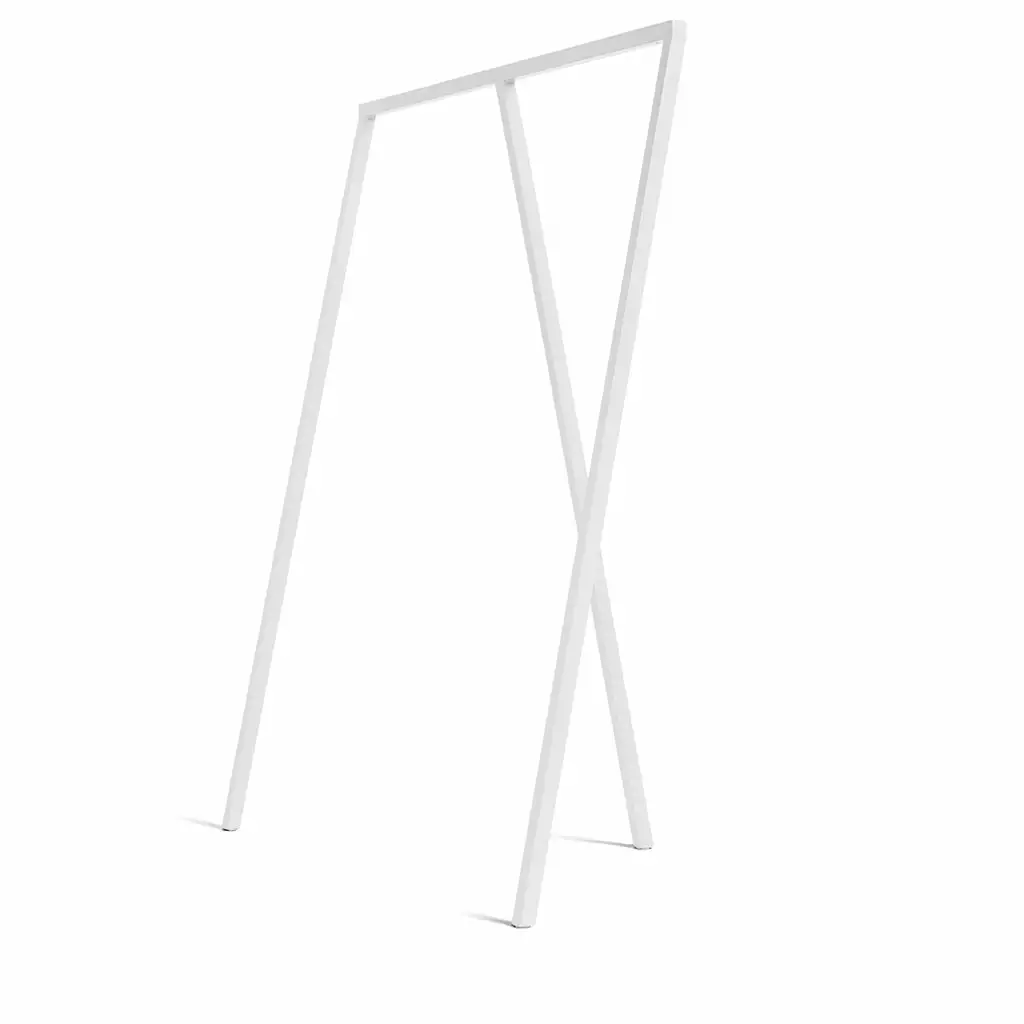 Loop Stand Wardrobe is a larger version of Loop Stand Hall. Based on the same elegant and graphic three-pillared design, it offers a simple and discreet wardrobe solution with increased capacity. Suitable for hanging clothes in a variety of private or public environments.