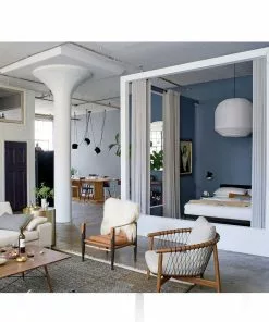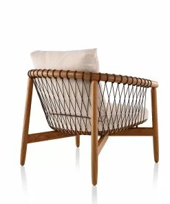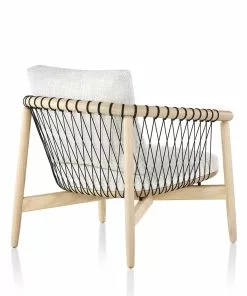 Parachute cords – a common industrial product – are an integral part of the chair’s design. Pulled down, the cords create a system of internal tension and supply the necessary back support, creating the feeling of being enclosed in a comforting, protective nest. The parachute cord is available in several colours, the frame in a selection of natural woods. Because of their simple, classic profiles, the Crosshatch chair and ottoman can work in a broad range of environments, from an executive office or a reception area to a penthouse or suburban living room.