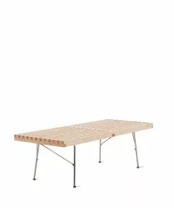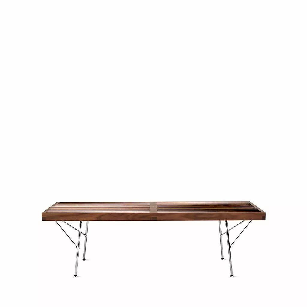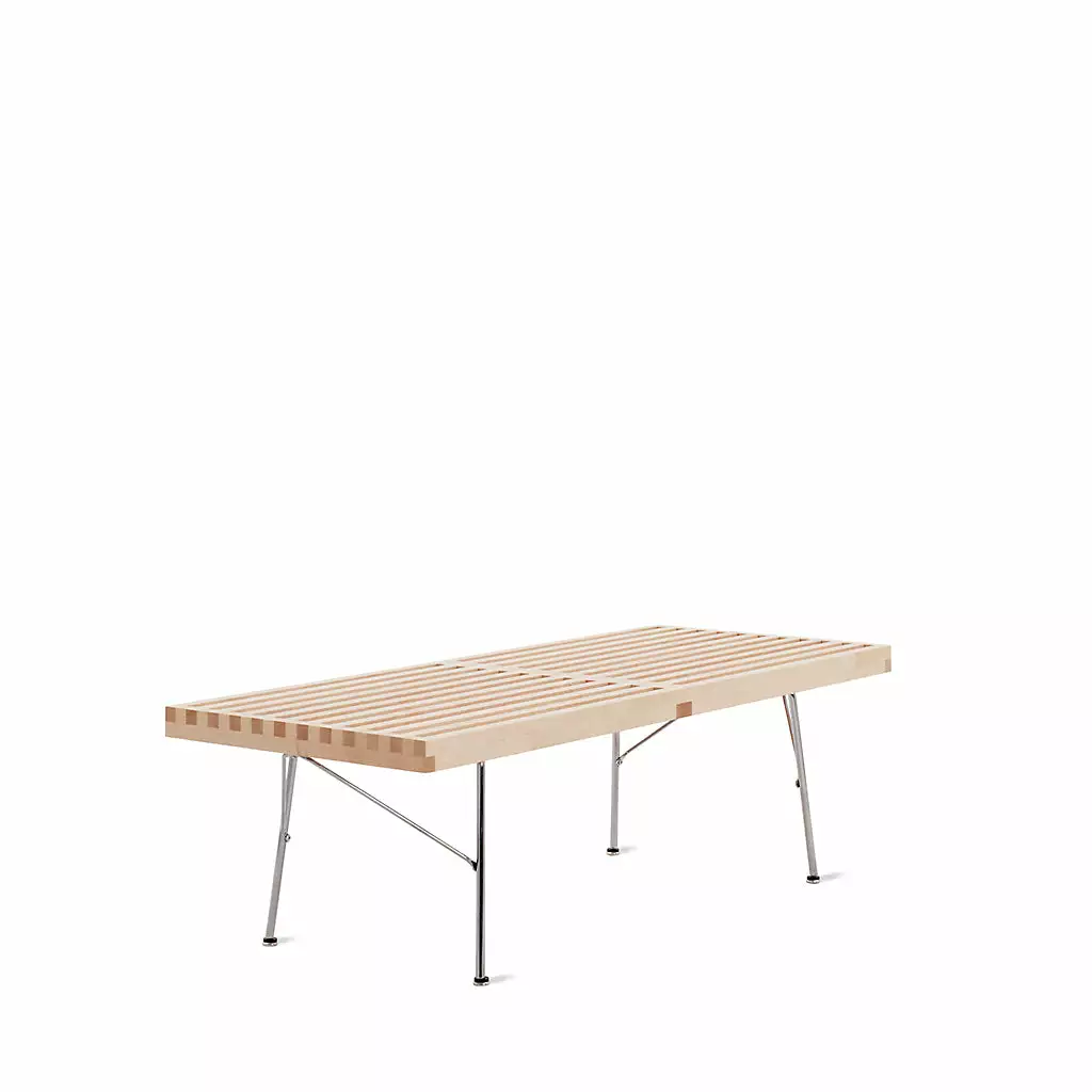 George Nelson’s Platform Bench (1946) is one of the great icons of midcentury modernism. For Herman Miller’s influential design director, utility was as important as beauty, and his spare rectangular bench is the result of this belief. It serves equally well as table, platform base or seating, depending on need and situation. No wonder it’s been called timeless; something this functional never dates. The Platform Bench’s legs are ebonized and finger-jointed for superior strength; also available with metal legs. Ships with legs unattached; simple assembly required. This is the authentic Nelson Bench produced by Herman Miller. Made in U.S.A.