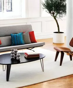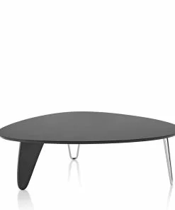 The asymmetric shape of its veneered top and the combination of metal and wood legs are true to Noguchi’s original design. This highly functional and structural piece is available in Walnut, Ebony on Maple, or White Ash finish options and it stands on two chrome hairpin legs and one in wood reminiscent of a ship’s rudder.Â