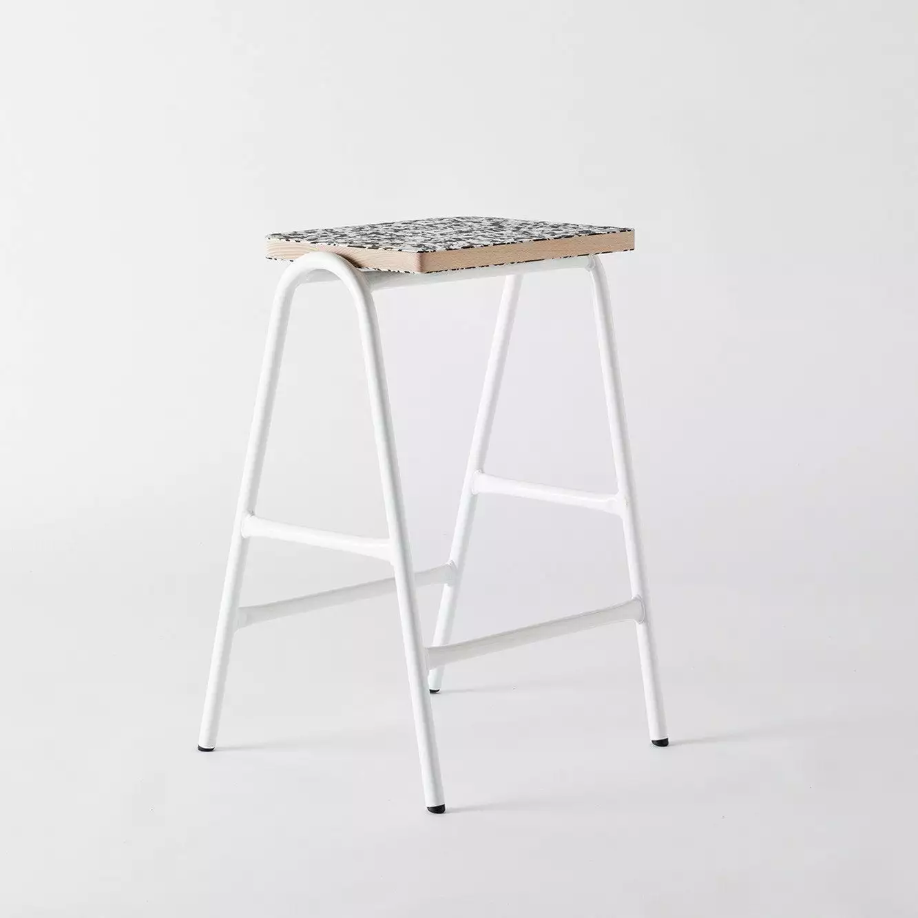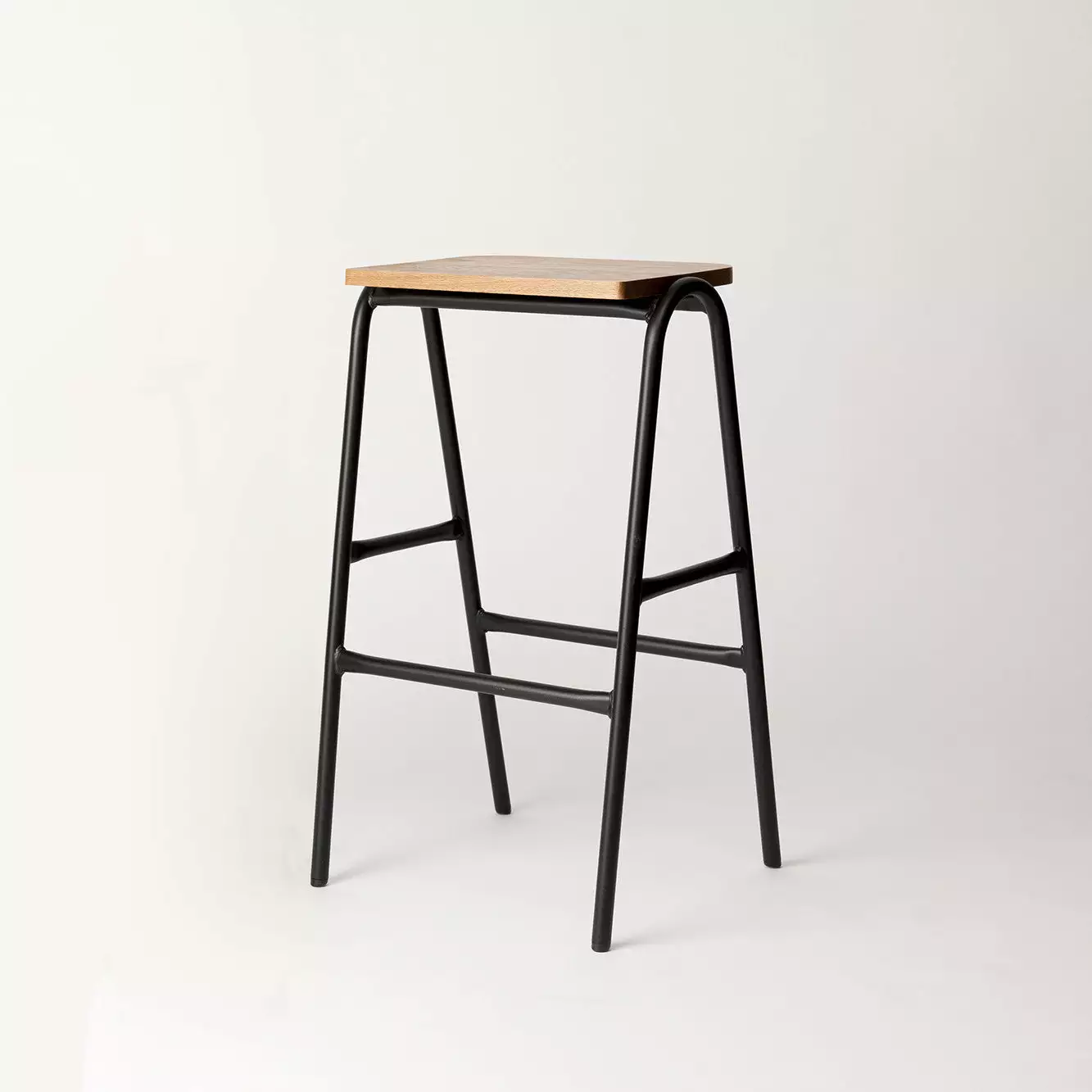 The newest addition to the Hurdle Family is the Hurdle counter and bar stool. The frame was developed by looking at intersecting lines and shadows, overlapping the frames structure and the footrest available for use on both sides of the stool.
