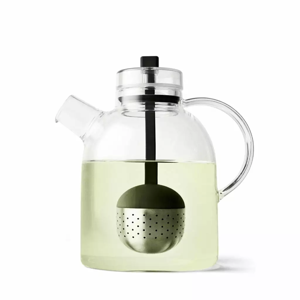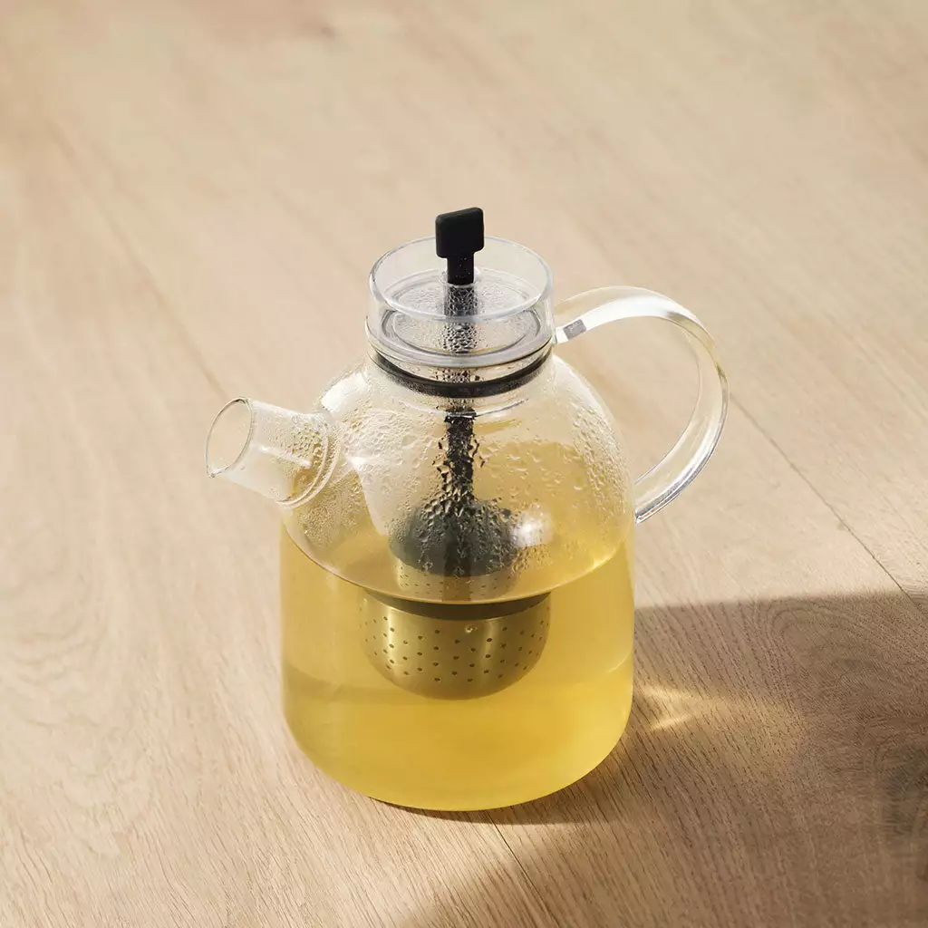 Inspired by classic, Oriental teapots – in a harmonic fusion with modernistic, Scandinavian design this glass teapot blends both practicality and style into one. A tea infuser hangs by a silicone string, serving as a stylish teabag in the middle of the teapot.Â
