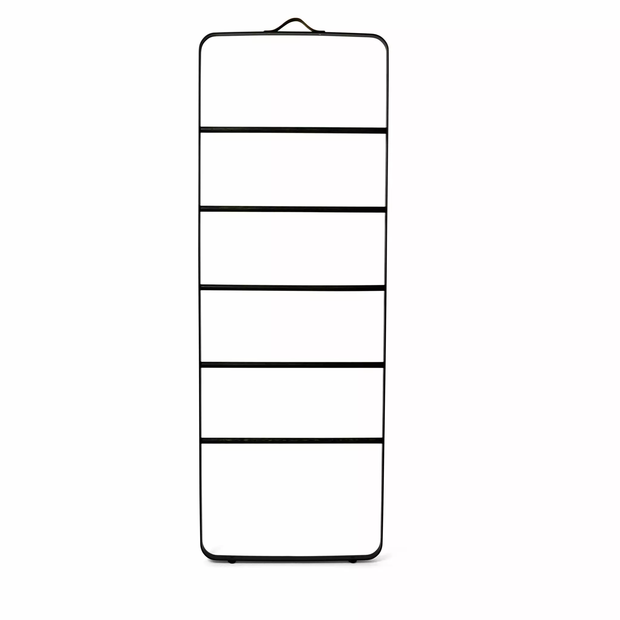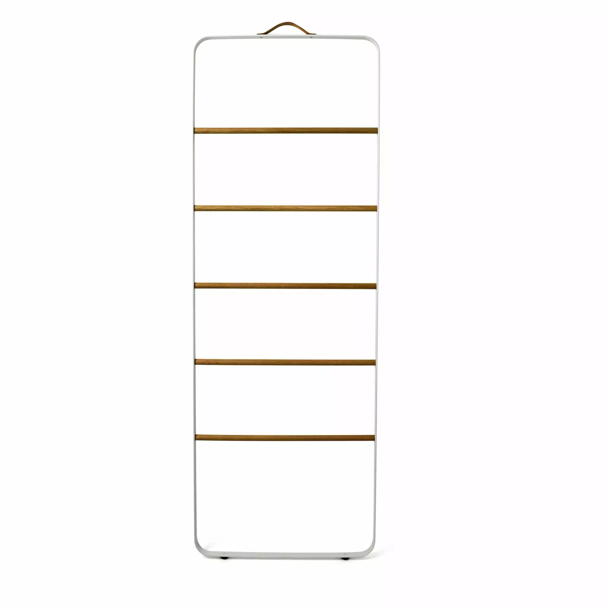 Light, uniform lines and rounded bases create a bathroom series characterized by understated elegance. This is all that is needed to create a pleasingly clean focal point in your bathroom. With functional details all around, the new Bath series from Menu is both hygienic and user-friendly. The Towel Ladder is an informal and flexible piece of furniture made for storing towels and accessories in the bathroom – clothes in the bedroom – or scarves and coats in the hallway. It’s easy to move around the house and the leather strap at the top (meant to fix the ladder to the wall) almost makes it look like an oversize suitcase, that you can lift and take anywhere.