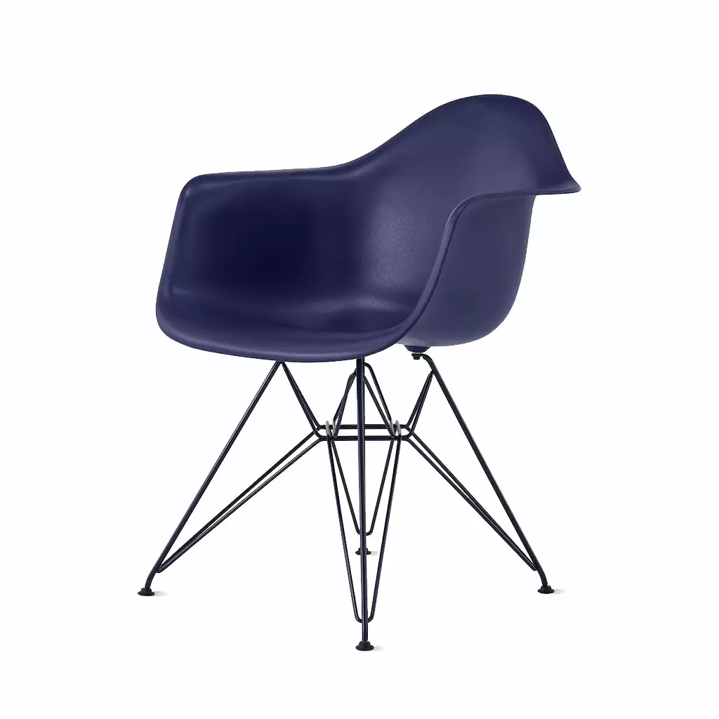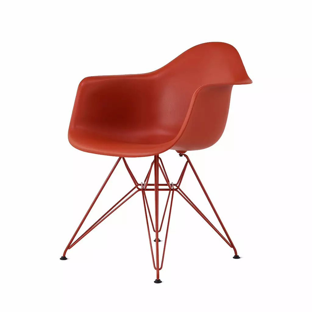 Charles and Ray Eames were one of the most enduring creative forces of the 20th century with the belief that everyday objects can be simple, playful and functional. They were continuously updating their work as new materials became available. Their first Moulded Plastic chairs were metal and entered as a prototype in MoMA’s 1948 International Competition for Low-Cost Furniture Design. They updated the material to fiberglass in the 50’s, and today the chairs are made of recyclable polypropylene.